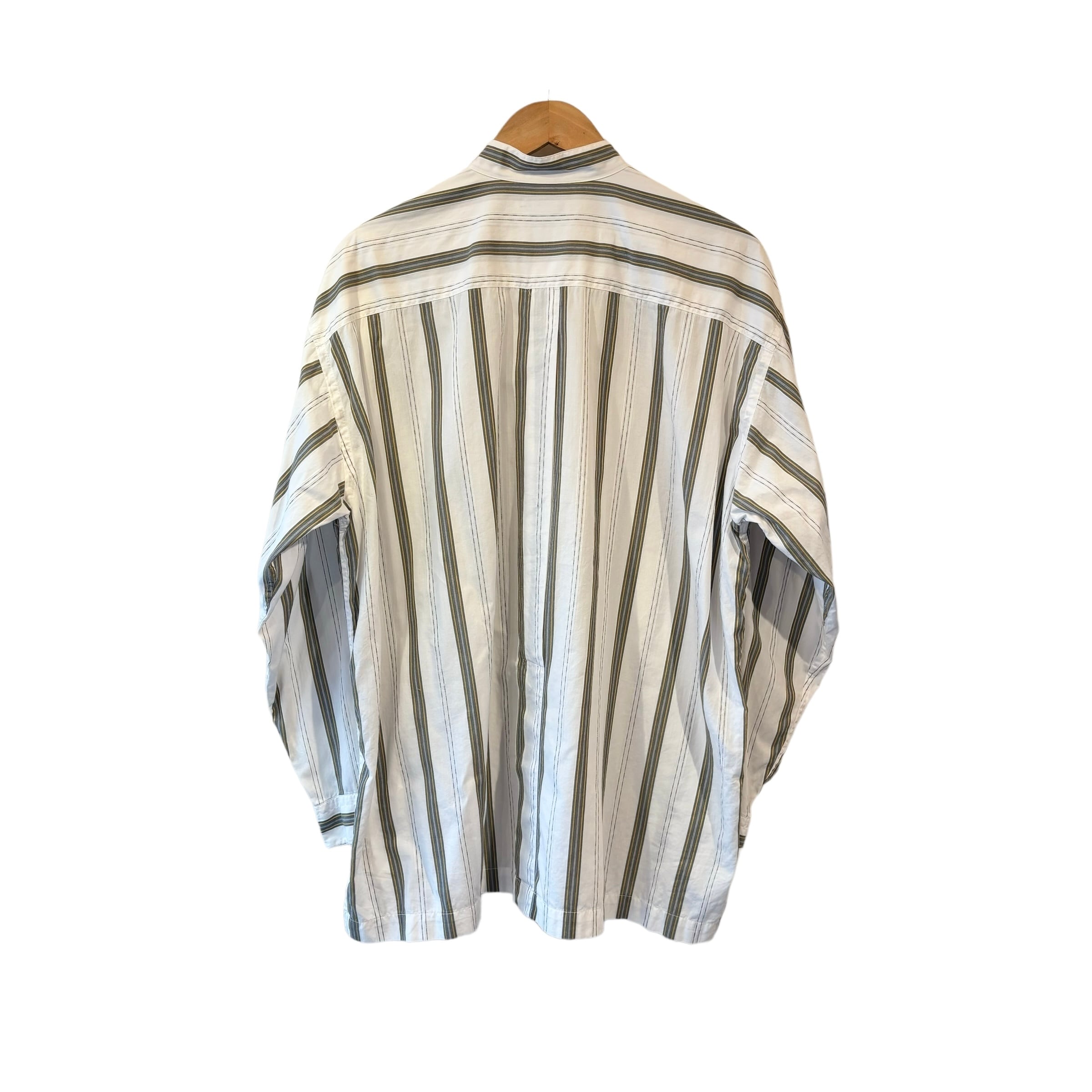 "ISSEY MIYAKE" Stripe cotton design L/S band collar shirt