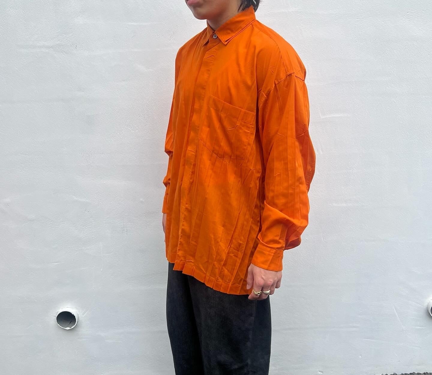 "ISSEY MIYAKE" Orange polyester design L/S pleats shirt