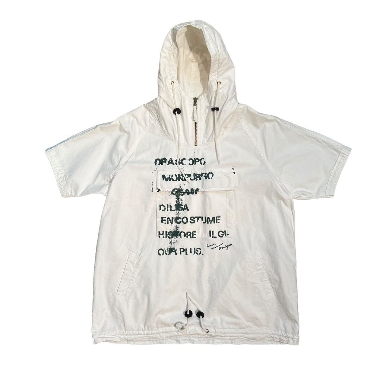 “DOUBLE SHOCK” White cotton print S/S hooded pullover