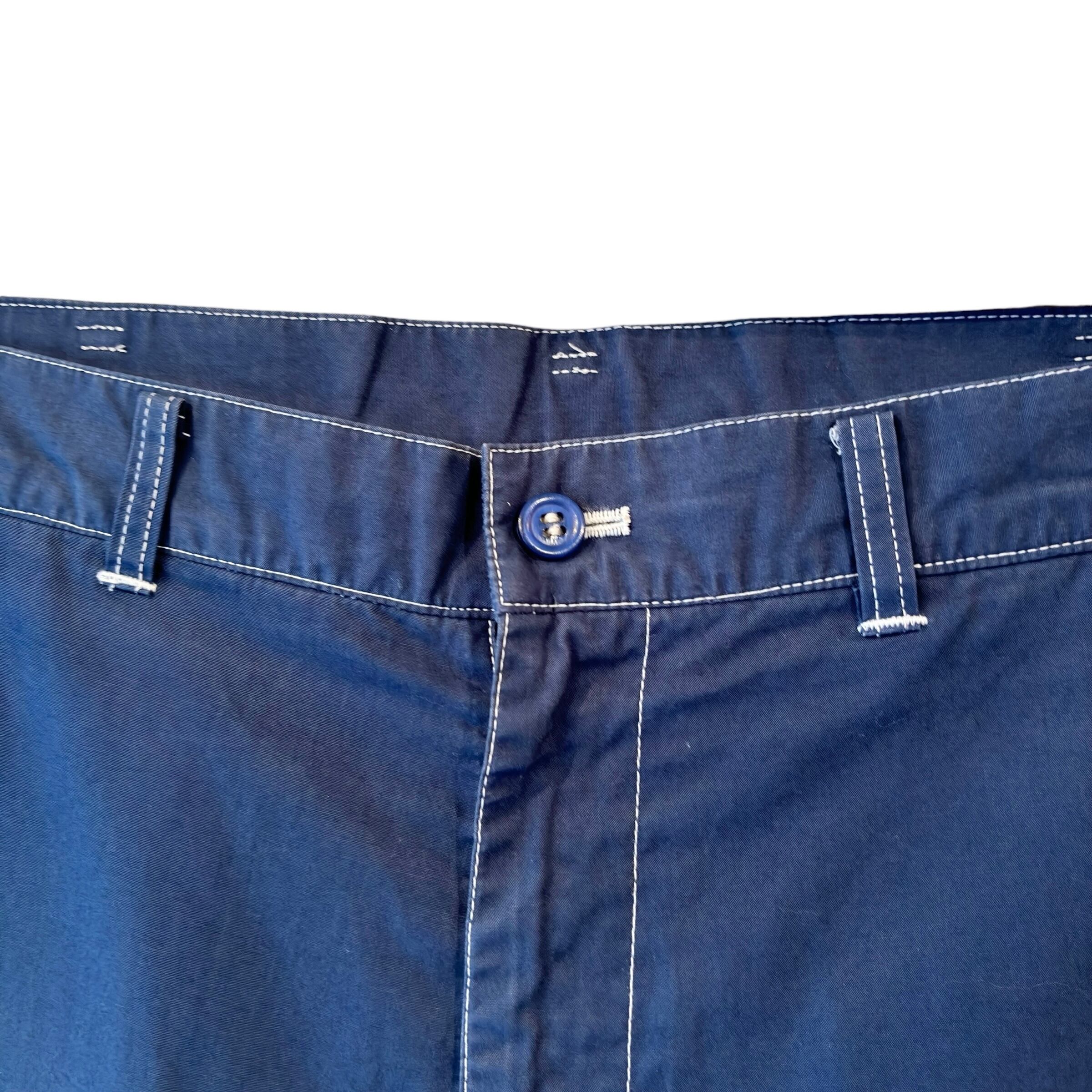 "GARCONS HOMME" Navy cotton design white stitch pants