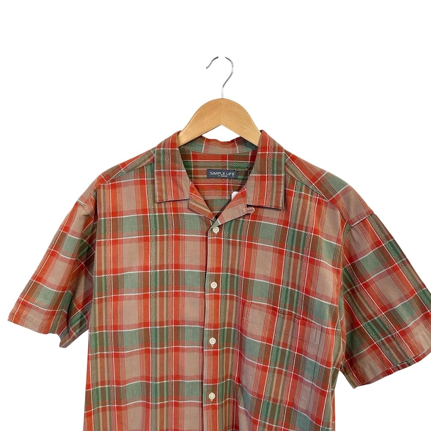 “SIMPLE LIFE” Check cotton S/S open collar shirt