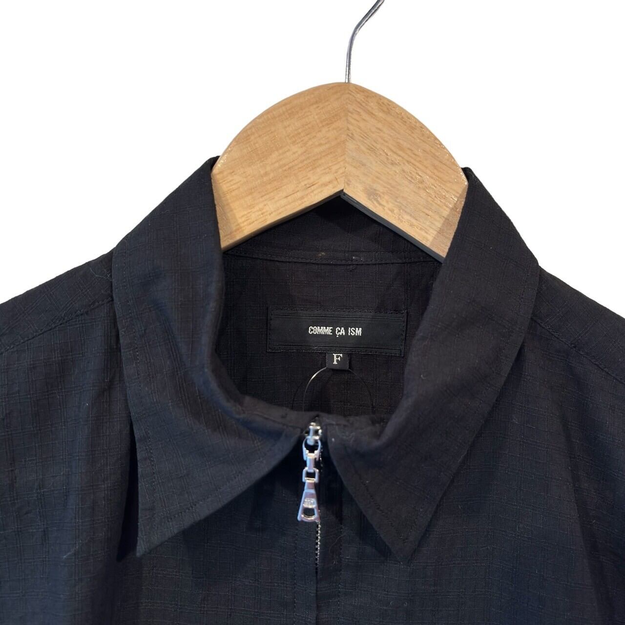 “COMME ÇA ISM” Black check S/S zip up shirt