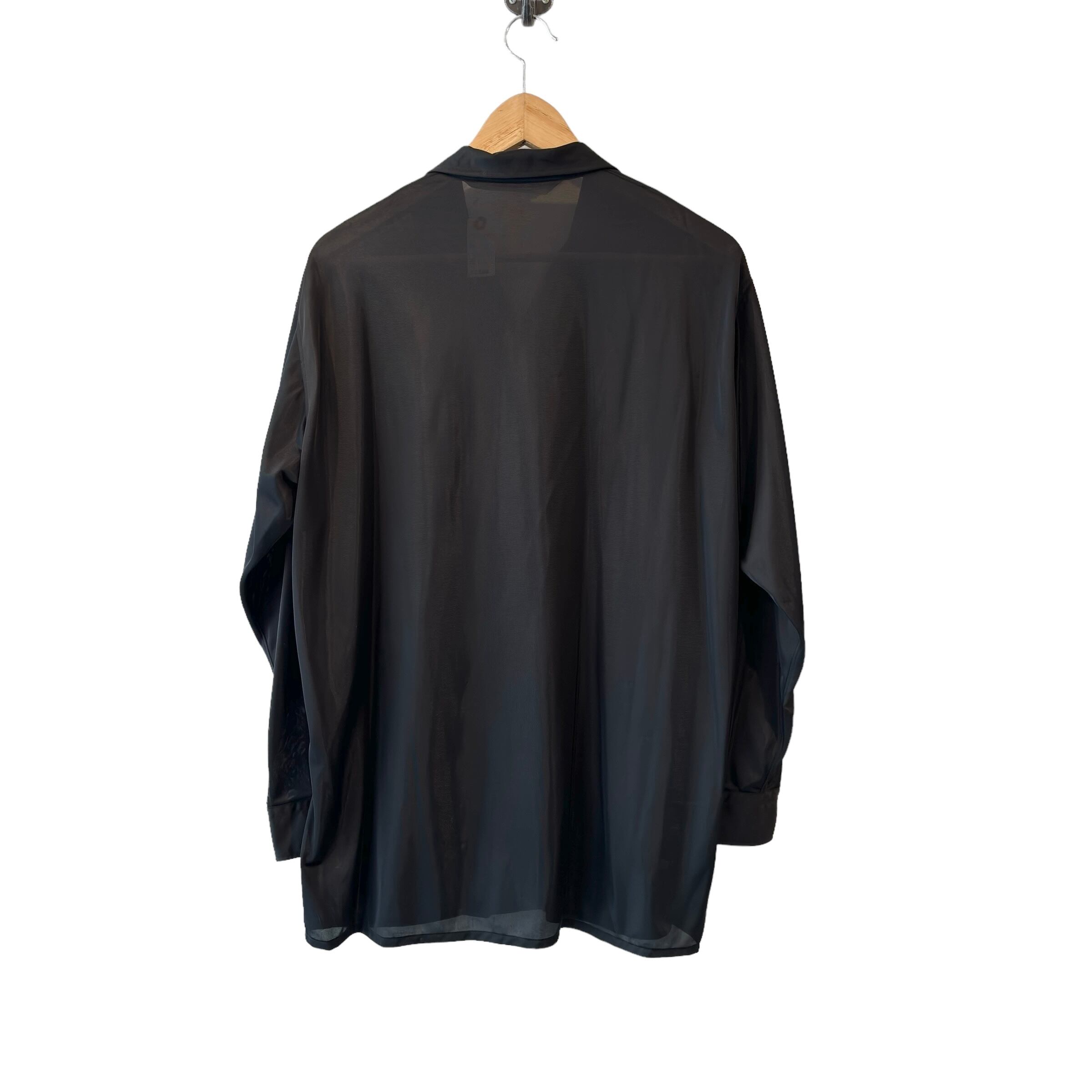 “COMME des GARCONS” Black mesh poly design L/S open collar shirt