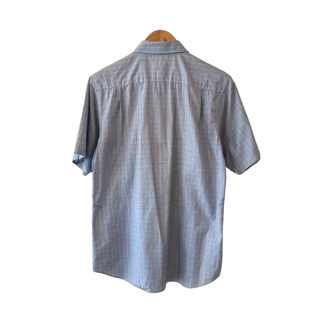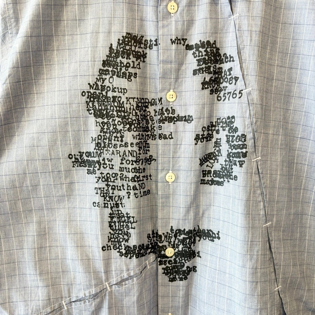 "DOUBLE SHOCK" Check pattern cotton design S/S unique tuck printed shirt
