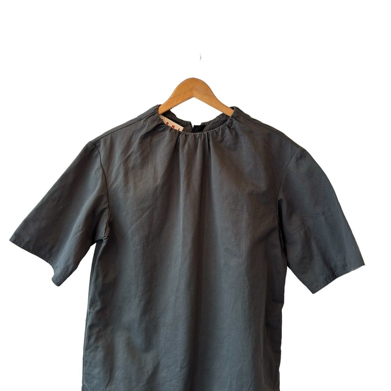 “MARNI”(for woman) Olive khaki cotton/linen gather one piece