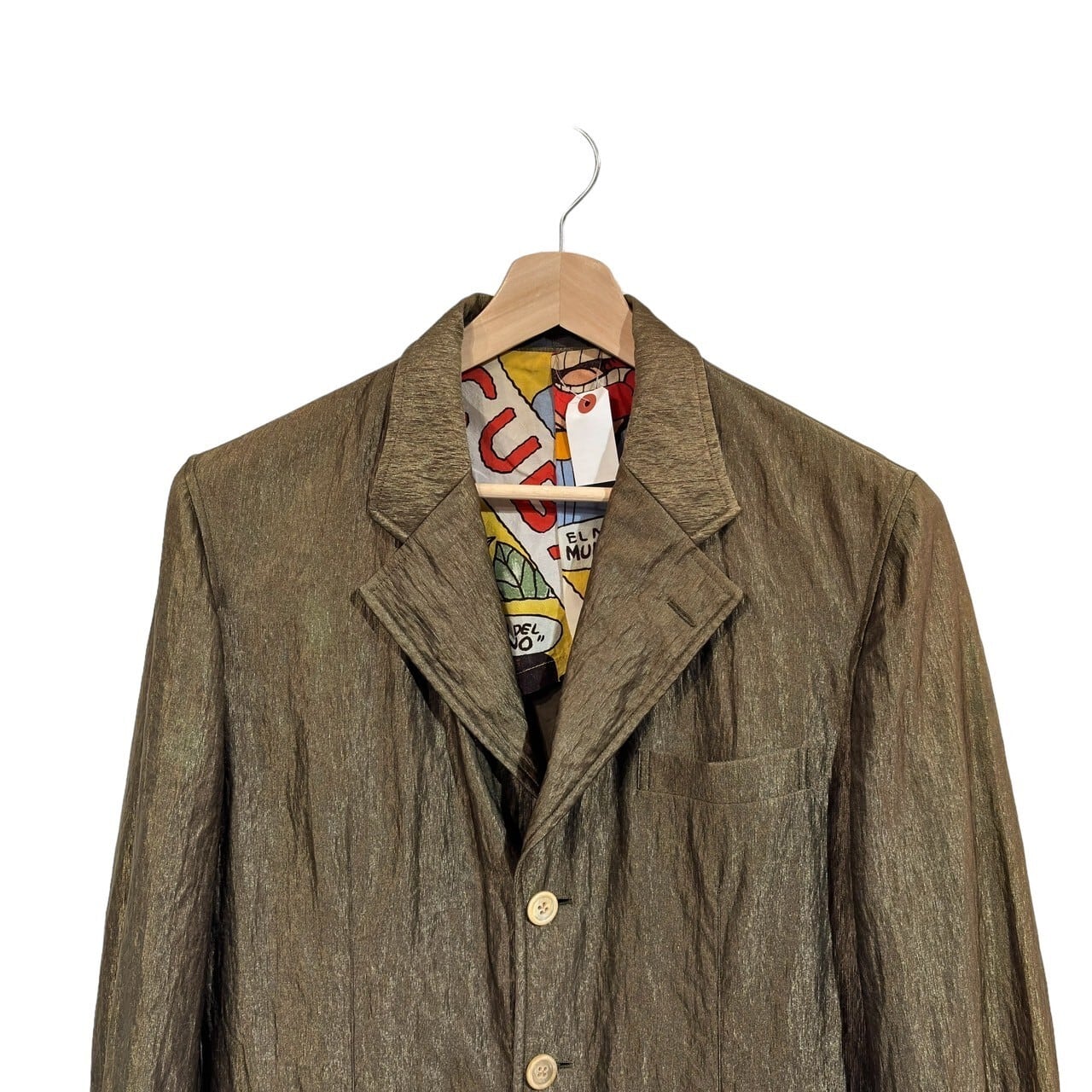 “GARÇONS HOMME” Shiny olive nylon design unique lining tailored jacket