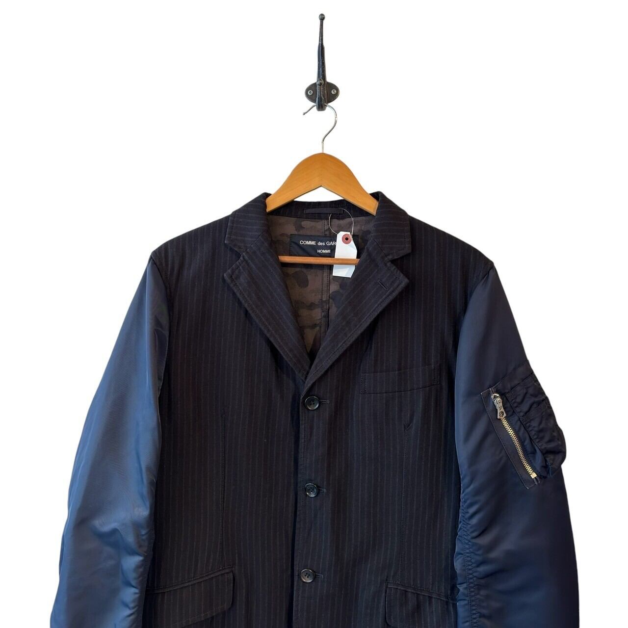 “GARÇONS HOMME” Stripe base wool/cotton design switch sleeve tailored jacket