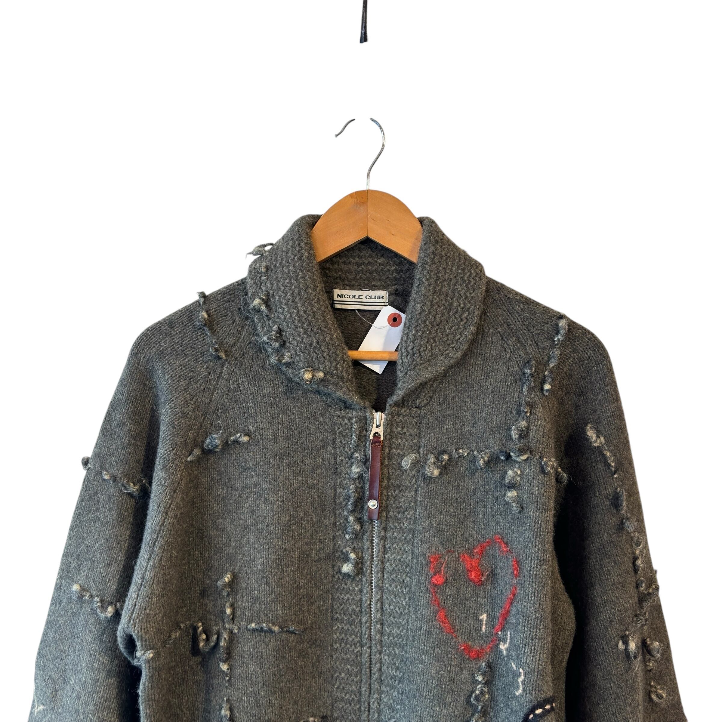 “NICOLE” Grey wool/nylon design 3D cowichan knit sweater