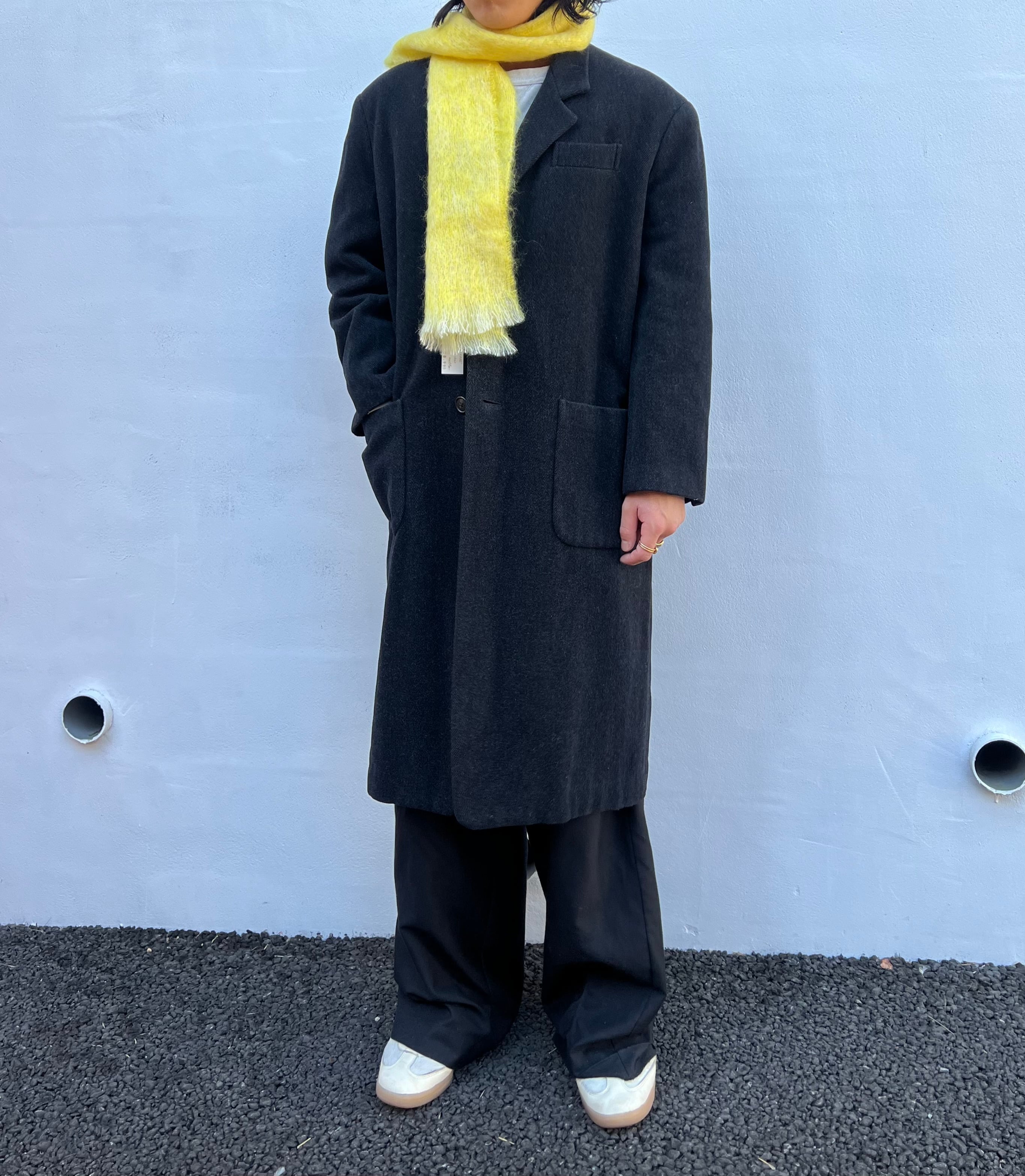 “Y's for men" Herringbone wool/nylon design chester coat