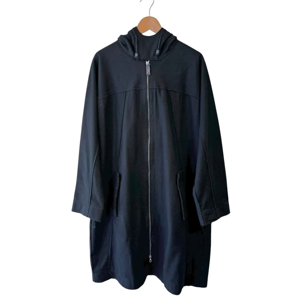 "W<" black wool&poly double zip hooded coat