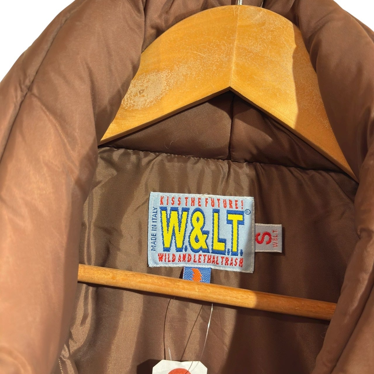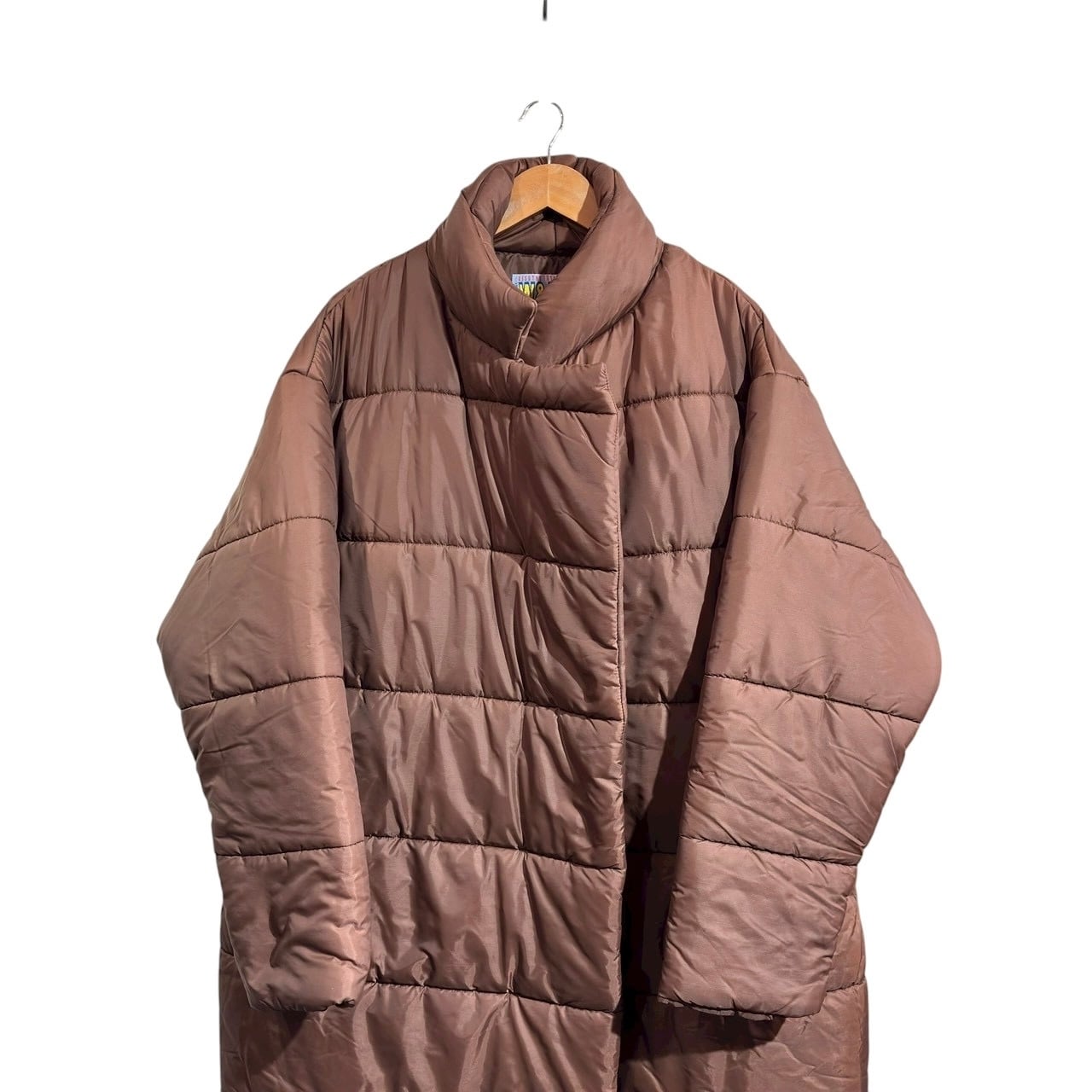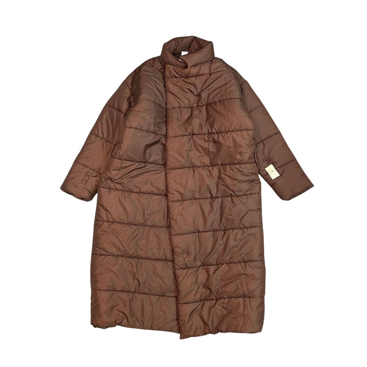 "W.&L.T." Brown poly padded button less super long coat