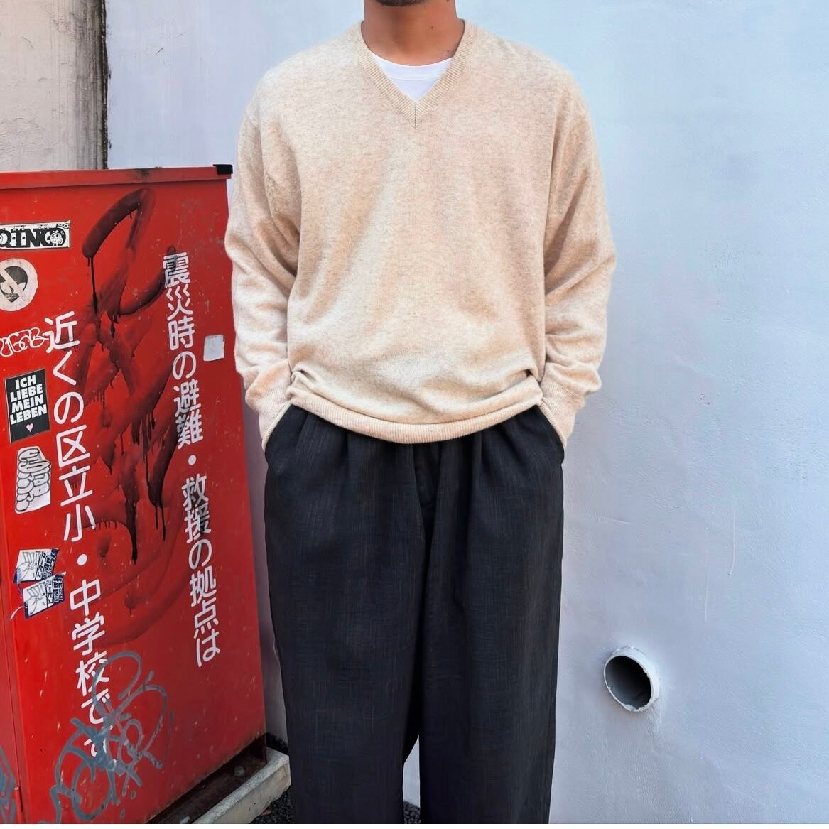 “GARÇONS HOMME” Beige base wool/nylon design Vneck sweater